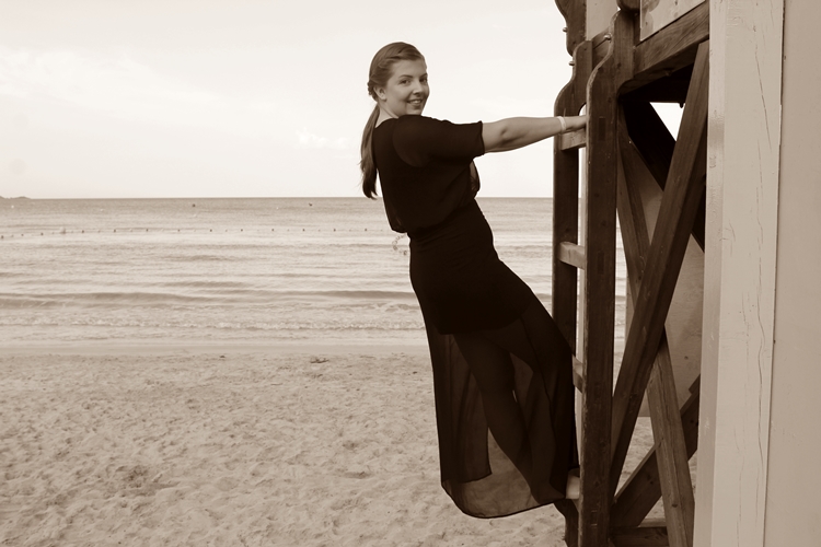 Oh ja, das Kleid eignet sich auch sehr gut, um auf den Aussichtspunkt des Rettungsschwimmers zu klettern. Ein bisschen Spaß muss sein!